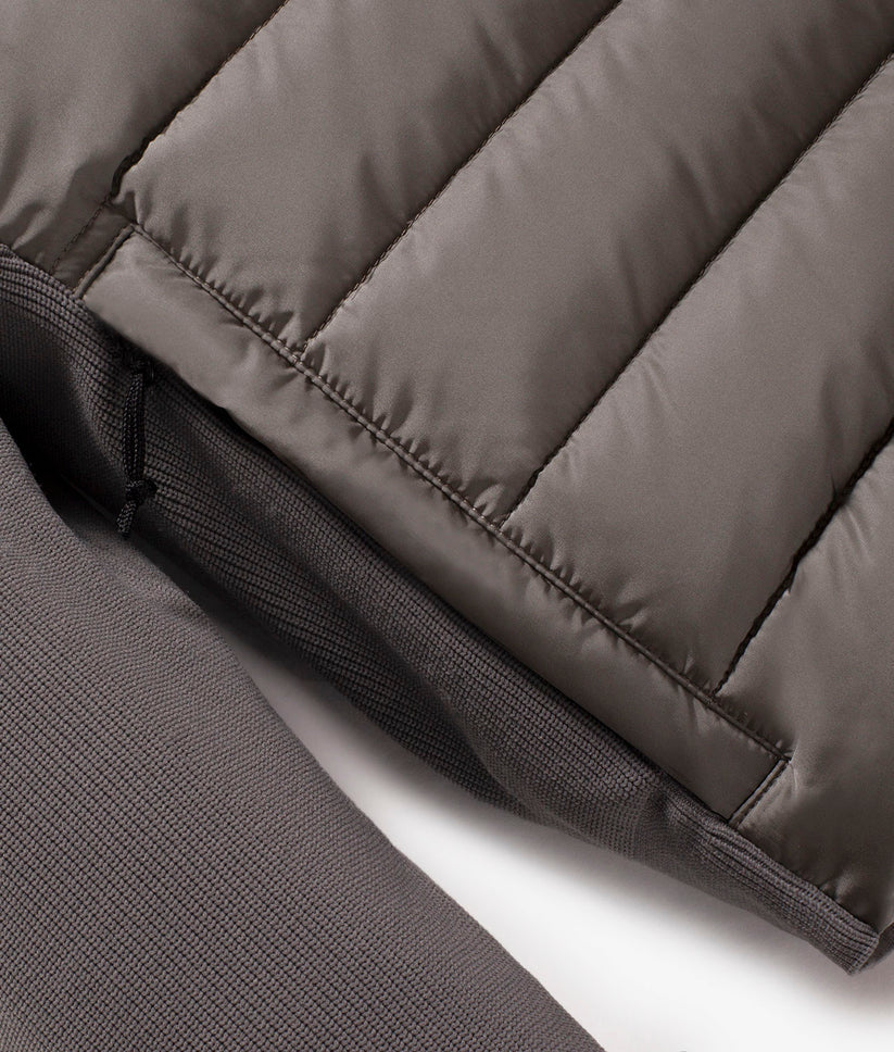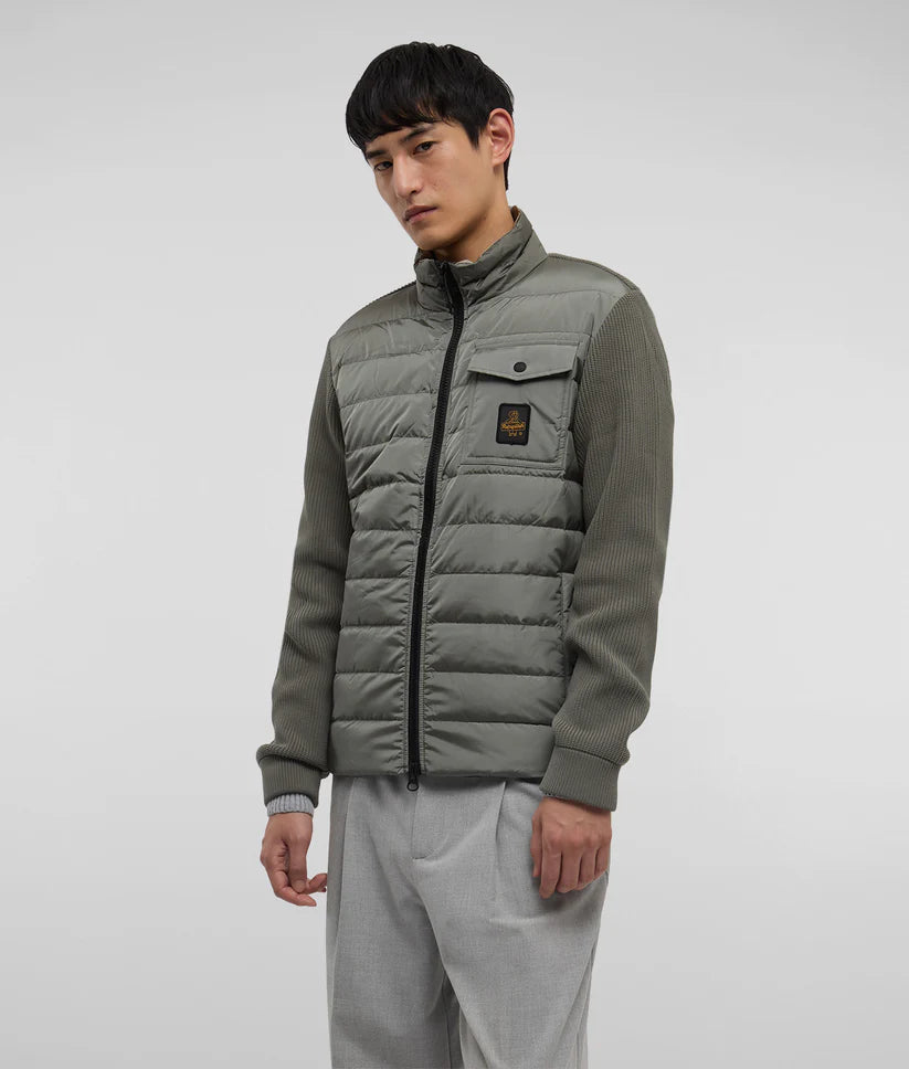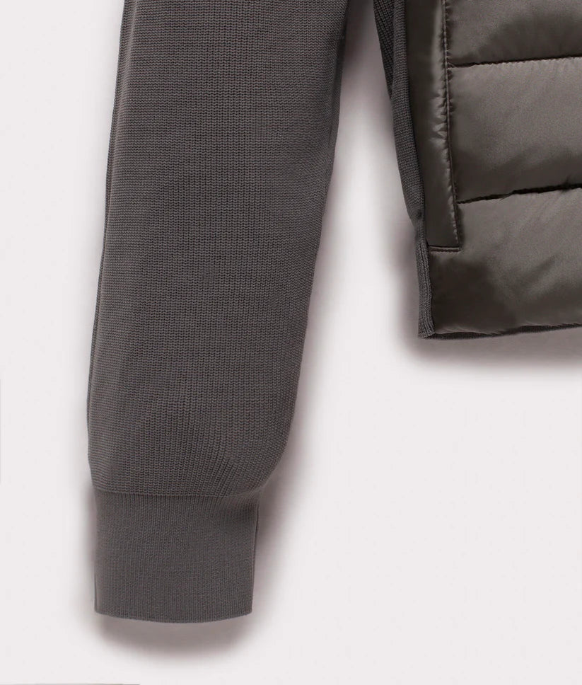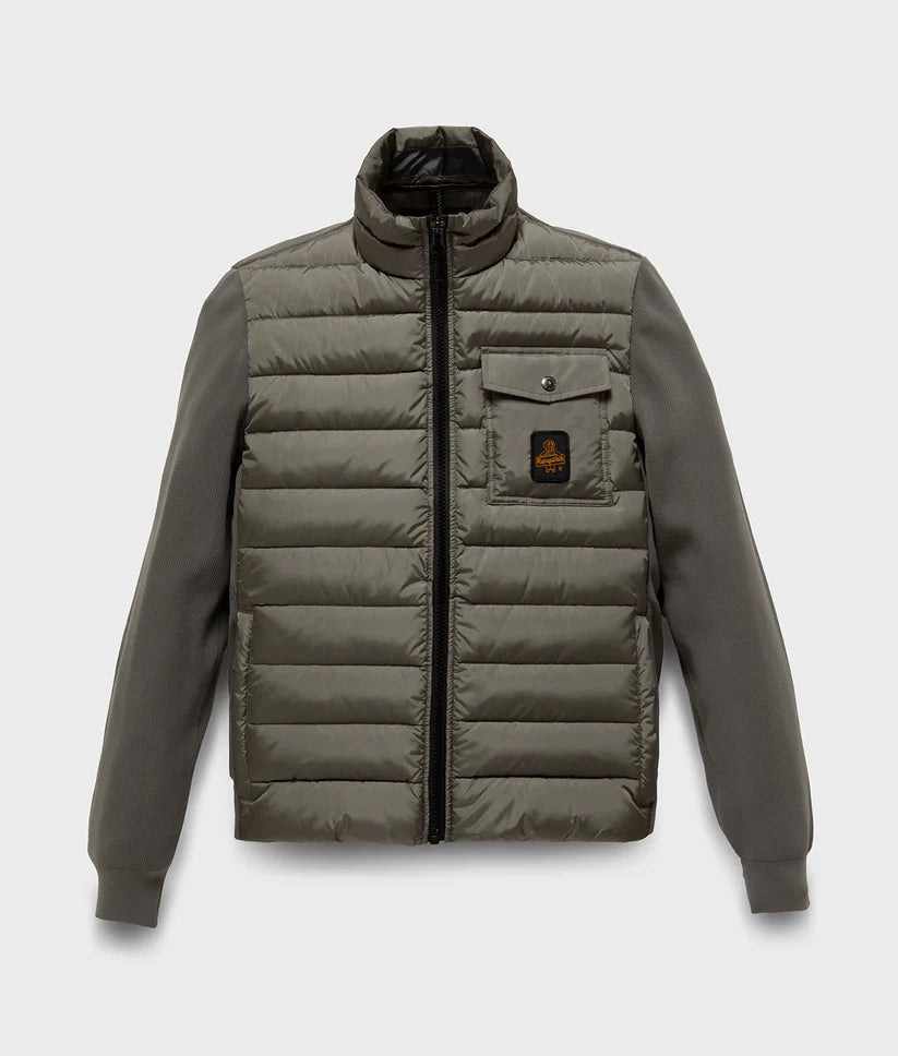 Piumino invernale ibrido dallo stile unico e ricercato che combina la praticità con l'eleganza. Realizzato in parte in maglia tecnica elasticizzata, presenta un corpo frontale a piumino in nylon dall'aspetto iridescente, imbottito in 100% piuma 90-10 certificata RDS, garantendo calore e comfort ottimali. Con un look semplice e lineare, questo capo è perfetto per completare i tuoi outfit invernali, offrendo un equilibrio tra performance e stile. Aggiungi questo piumino ibrido al tuo guardaroba e affronta l'inverno con eleganza e funzionalità.