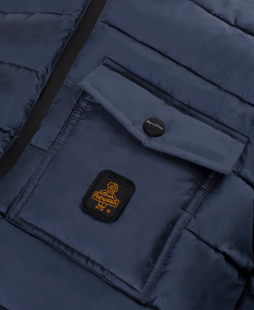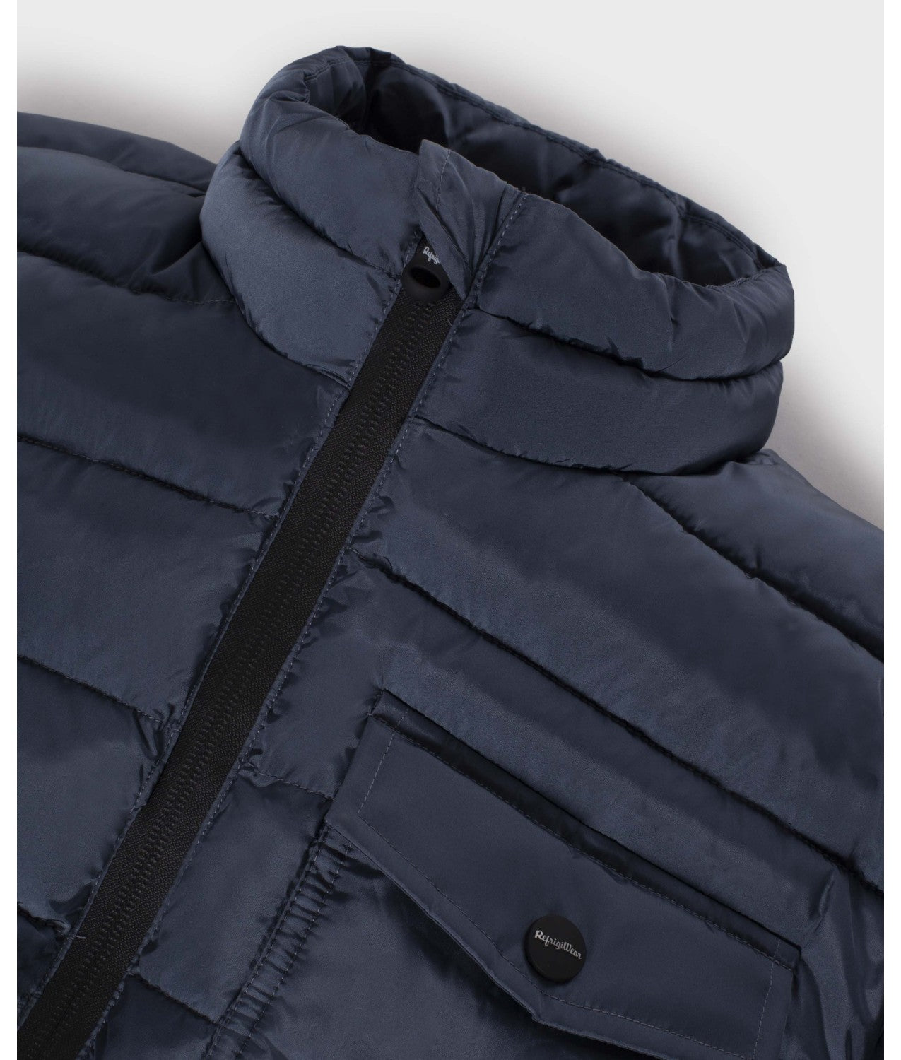 Piumino da Uomo con collo in piedi. Comodo e pratico, ideale per tutti i giorni. Un must-have per affrontare al meglio la stagione fredda. Guscio esterno in 100% nylon dal look iridescente. Imbottitura termica 100% animal-free PrimaLoft® RISE che rende il capo caldo e piacevole da indossare. Dettagli studiati nei minimi particolari.